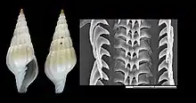 | Shell and radula of Alisimitra barazeri (holotype at MNHN, Paris) | |