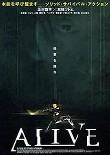 Alive (アライヴ, Araivu) is a 2002 Japanese science fiction film directed and co-written by Ryuhei Kitamura. It is based on the manga of the same name and stars Hideo Sakaki, Ryo, Koyuki, Erika Oda, Jun Kunimura, Bengal, Tetta Sugimoto, and Tak Sakaguchi. In the film, two death row inmates are confined to an isolation cell with an alien organism that surges the violent nature of its host. Alive was theatrically released in Japan on June 21, 2003.