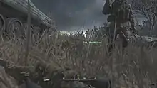 ![]() The player is forced to hide prone in long grass whilst a platoon passes by. The section was praised by critics for its tension. | |