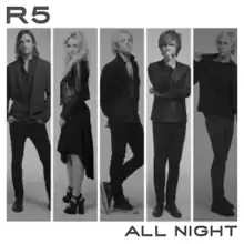 "All Night" is a pop rock[1] and power pop[2] song by American pop rock band R5. It was released on June 2, 2015 as the third single from Sometime Last Night, along with the album's iTunes pre-order.[3] The song was announced on May 28 as the album's opening track.[4]