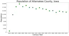 Allamakee County (/ˈæləməˌki/) is the northeasternmost county in the U.S. state of Iowa. As of the 2020 census, the population was 14,061.[1] Its county seat is Waukon.[2]