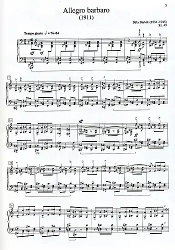 Allegro barbaro, BB 63 (Sz. 49), composed in 1911, is one of Béla Bartók's most famous and frequently performed solo piano pieces. The composition is typical of Bartók's style, utilizing folk elements. The work combines Hungarian and Romanian scales; Hungarian peasant music is based on the pentatonic scale, while Romanian music is largely chromatic.