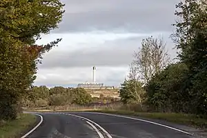 A disused part of the Allerton Park Quarry was used to locate the plant on,[9] with 55,000 tonnes (61,000 tons) of earth excavated out to form the waste banks beneath the plant.[10] The quarry used to produce sand and gravel, and had also been used as a landfill site, with permission to carry on with landfilling until 2030.[11] The main plant is built at the bottom of part of the former quarry, which is why the chimney does not seem as tall as its 230-foot (70 m) height.[12] However, the plant is very noticeable in the landscape, especially from the A1(M) motorway and the adjacent A168 road.[13] The construction of the plant was undertaken by Taylor Woodrow Construction.[14]