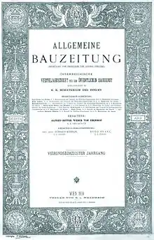 The Allgemeine Bauzeitung was founded in 1836[1] by the architect Ludwig Förster[2] and was the most important architectural publication of the Austrian monarchy. The magazine was based in Vienna.[3] It was shut down in 1918.[2]
