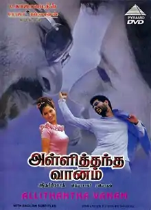 Alli Thandha Vaanam (transl. The sky gave me too much) is a 2001 Indian Tamil-language romantic drama film directed by Sreedhar Prasadh. The film stars Prabhu Deva, Laila and Neha Bajpai, with Prakash Raj, Vivek, Moulee and Rajeev playing supporting roles. Murali appeared in a guest role. The film score and the soundtrack were composed by Vidyasagar. The film was released on 5 September 2001.