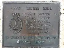 Commemorative plaque for the Allied Chinese Ships during the Second World War at Rockingham Naval Memorial Park