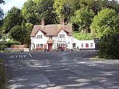 The settlement developed where a minor road from Winterslow forded the river and crossed the road from Salisbury; the Winterslow road was obliterated in the early 20th century by the military training area.[5] The Salisbury road went through the centre of the village, passing east of the church,[6] until 1835 when a short bypass was made, taking it immediately west of the church.[3] At the southern end of the new section is a pub now called the Old Inn,[7] an early 20th-century rebuilding of an establishment standing there in 1848 or earlier.[3]