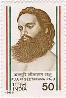 Alluri Sitarama Raju (4 July 1897 – 7 May 1924)[1] was an Indian revolutionary who waged an armed campaign against British colonial rule in India. Born in present-day Andhra Pradesh, he became involved in anti-British activities in response to the 1882 Madras Forest Act, which effectively restricted the free movement of Adivasis (tribal communities) in their forest habitats and prevented them from practicing a traditional form of agriculture known as podu. Rising discontent towards the British led to the Rampa Rebellion of 1922, in which he played a major part as a leader. Mustering a force combined of Adivasis, farmers and sympathizers to their cause, he engaged in guerilla campaigns against the British colonial authorities in the border regions of the Madras Presidency part of the districts of East Godavari and Visakhapatnam (now part of Alluri Sitharama Raju district). He was nicknamed "Manyam Veerudu" (transl. Hero of the Jungle) by local villagers for his heroic exploits.[2]