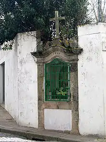Alminhas are located in several streets of the city, often at crossroads. They are generally stonework, with a small niche protected by an iron grid that is kept by the Confraria das Almas (Souls Brotherhood), with an azulejo panel invoking the souls of Purgatory. Older alminhas in the city center such as Rua da Conceição-Rua Primeiro de Maio Alminha or Rua dos Ferreiros-Praça do Almada Alminha have a more elaborate niche, resembling an altarpiece.