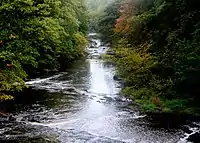 The Almondell Estate follows the line of the River Almond, with paths and trails crisscrossing the river over a variety of bridges. It is a popular location with walkers and families.
