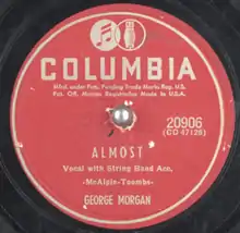 "Almost" is a song written by Vic McAlpin and Jack Toombs, sung by George Morgan, and released in 1952 on the Columbia label (catalog no. 20906).