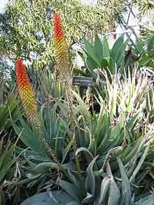 Aloe petricola grows best in early to mid winter, but flowers on this plant typically do not bloom until mid summer, and are seen at their best towards the end of July and beginning of August in the northern hemisphere. Like almost all other aloes, Aloe petricola is drought resistant, meaning that it needs little to no water to survive. This resistance is due to the fact that the leaves of this plant can store water, so they can essentially take care of themselves, making this plant ideal for any gardener.[2] Additional growth requirements for this succulent plant include a soil pH that is either acidic, neutral (pH=7), or very slightly basic. It also grows in different soil types, from clay-like soils to sandy soils.[6] This makes maintenance of the plant nearly effortless given the right environment. Aloe petricola is a greatly desired plant for most gardeners because it is considered an undemanding garden plant. Aside from its simple upkeep, this aloe grows quite well in cultivation and looks outstanding either on its own or bunched in groups. The plant's striking and luminous red, yellow, green, and white colors stand out, while they add beauty and elegance to any garden.