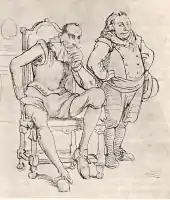 ![]() Alonso Quijano (seated) beside his squire Sancho. Illustration by Wilhelm Marstrand (1810–1873). | |