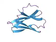 A crystal structure has been determined for tendamistat, the 74-amino acid inhibitor produced by Streptomyces tendae that targets a wide range of mammalian alpha-amylases.[1] The binding of tendamistat to alpha-amylase leads to the steric blockage of the active site of the enzyme. The crystal structure of tendamistat revealed an immunoglobulin-like fold that could potentially adopt multiple conformations. Such molecular flexibility could enable an induced-fit type of binding that would both optimise binding and allow broad target specificity.