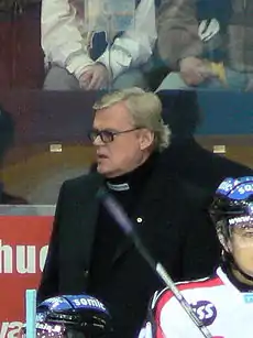 Suhonen was appointed head coach of the Chicago Blackhawks in May 2000[6] and was the first European born head coach in the National Hockey League since Johnny Gottselig in 1948. Suhonen lasted less than a year as head coach of the Hawks, as he resigned next spring because of heart problems.[7] There was frequent criticism to Suhonen's coaching citing lack of discipline and a country club atmosphere among the players.[8]