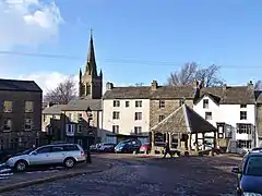 Although the town does not hold a regular market it still maintains the legal right to do so. The market cross, which acts as a focal point in the centre of town, was constructed in 1981 to replace one which was demolished by a wagon in January 1980. That earlier cross had itself replaced a cross of 1883 which was knocked down by a lorry in 1968.[13]