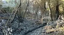 The fire spread very quickly, fueled by the strong tramuntana winds and affecting almost 14,000 hectares, from Albera National Park down, nearly to the town of Figueres.[11] This composition of the area was 51% were trees, 22% crops, and 19% brush. Of the 14,000 hectares, 3,000 (containing agricultural crops) were not burned.[1] The fire threatened the towns of Llers and Capmany reaching homes and burning some in Jonquera and Agullana. At points, the flames reached five meters in height.[12]