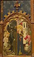 This altarpiece is attributed to the painter Gonçal Peris, one of the chief representatives of Valencian International Gothic. His style is marked by expressive and picturesque elements, flowing lines and the charm of the colour.[3] Gonçal came from a family of painters living in the city of Turia in the 13th century. He was trained in the workshop of Pere Nicolau. Upon his death, Gonçal was charged to manage the assets of his teacher. He had a successful workshop during this time.[4]
