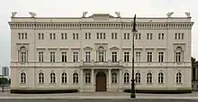 The Kommandantenhaus (English: Commandant's House), also called Alte Kommandantur (Old Commandantura), on Unter den Linden boulevard in the historic centre of Berlin is the former headquarter of the city's commandant. It was built in 1654 and renovated from 1873 to 1874 in Renaissance Revival style. Damaged during the Allied bombing in World War II and later demolished, it was rebuilt from 2001 to 2003 as part of the Forum Fridericianum. Since then, it has been home to a representative office of Bertelsmann.[1] The Kommandantenhaus was the workplace of the French writer Stendhal, the German politician Otto Wels and the German Resistance member Paul von Hase.