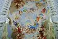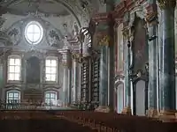 The abbey displays a fusion of Baroque and Rococo stucco architectural styles in its interiors. During the reconstruction, the library, imperial staircase and marble hall were added.[1] The staircase, abbey church and library are noted for the frescoes painted by Paul Troger. Those in the vestibule leading to the library are the work of his student, Johann Jakob Zeiller.[7]