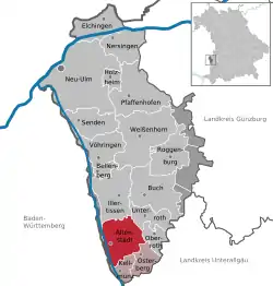 The municipality is located in middle Swabia in the valley of the Iller, about 30 km south of Ulm and 25 km north of Memmingen.