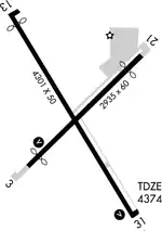 Alturas Municipal Airport covers an area of 160 acres (65 ha) at an elevation of 4,378 feet (1,334 m) above mean sea level. It has two asphalt paved runways: 13/31 is 4,300 by 50 feet (1,311 x 15 m) and 3/21 is 3,096 by 60 feet (944 x 18 m). For the 12-month period ending December 31, 2008, the airport had 31,500 aircraft operations, an average of 86 per day: 95% general aviation and 5% air taxi.[1]