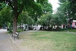 He participated almost annually in the Autumn Exhibit between 1883 and 1911, and held notable exhibitions in Christiania Kunstforening (1895, 1906, 1924, 1931), at the 1862 International Exhibition, the Exposition Universelle of 1889 and in Munich in 1913.[1] Eleven of his works are owned by the National Museum of Art, Architecture and Design.[2] He is also represented in Mandal Kunstforening and Mandal Bymuseum, but is perhaps best known for the collection of about 300 works which was donated to Oslo municipality by Nielsen's heirs in 1933. Since 1994 this collection is on permanent exhibit in the Stenersen Museum.[1][4] Nielsen was also decorated as a Knight, First Class of the Royal Norwegian Order of St. Olav in 1890.[1] The square Amaldus Nielsens plass, which includes a bust of Nielsen, was named after him.