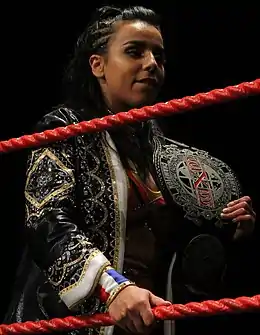 Amale Dib (born June 19, 1993) is a French professional wrestler. She is currently signed to WWE, where she performs for on the NXT UK under the mononymous ring name Amale.[1] She is the first French female wrestler to be signed to WWE.[2] She is best known for her time on the independent circuit, as well as the German-based professional wrestling promotion Westside Xtreme Wrestling (wXw), where she is a former Women's Champion.