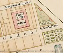 Copenhagen's second botanical garden was situated at the site from 1752. It was created by Georg Christian Oeder in the newly founded Frederiksstaden district at the request of Frederik V, at a site bisected by Amaliegade just north of Frederik's Hospital. The smaller western section, covering just under half a hectare, was equipped with a greenhouse while the eastern section remained largely unplanted. The garden was opened to the public in 1763.