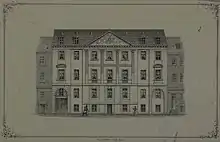 By 1840, Rørbye and her daughters had moved to the first floor apartment.[9] Her old apartment on the second floor had been taken over by Henrik Maximillan Schou, a colonel in the Royal Danish Army, who lived there with his wife Ingeborg Elisabeth Schou (née Nielsen), their three children (aged 12 to 16), two male servants and two maids.[10] Countess Juel Wind Friis (1795–1861), widow of Karl Ludvig, Count Krag-Juel-Vind-Frijs of Juellinge (1780–1838), resided in the ground floor apartment with a chambermaid (kammerjomfru), a maid and a servant.[11] Anders Svendsen Luntofte, the proprietor of the tavern in the basement, resided in the associated dwelling with his wife Bergitte Christine Kolberg and their eight children (aged one to 16).[12]
