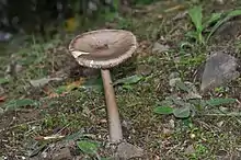 Amanita vaginata, commonly known as the grisette or the grisette amanita,[1] is an edible mushroom in the fungus family Amanitaceae. Unlike many other Amanita mushrooms, A. vaginata lacks a ring on the stem. The cap is gray or brownish, 5 to 10 centimetres (2.0 to 3.9 in) in diameter, and has furrows around the edge that duplicate the gill pattern underneath. It has a widespread distribution in North America, and is thought to be part of a species complex that includes other similar-looking Amanitas.