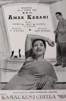 Amar Kahani (Immortal Story) is a 1949 Hindi romantic drama film directed by Baij Sharma.[1] It was produced under the Kamal Kunj Chitra banner.[2] The music was composed by Husnlal Bhagatram, with lyrics by Rajendra Krishan.[3] The film starred P. Jairaj, Suraiya, Ranjana and Jagdish Mehta.[4] Amar Kahani was one of the many films Jairaj and Suraiya starred in together. The others were: Tamanna (1942), Singaar (1949), Rajput (1951, Resham (1952) and Kanchan (1955) (Amar Kahani re-released in a new form).[5][6][7][8]