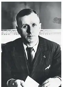He was subsequently accused of "having participated in the creation and organisation of the Groupe ouvrier et paysan",[7] and on the night of 7 October 1939, he was arrested. On 20 February 1940, he was ejected from the Legislature, and on 3 April 1940, he was sentenced to 5 years in prison, loss of his civil and politic rights, and a fine of 4000 francs.[8][9] After having been moved between 14 prisons, he was eventually detained during March 1941 in the bagne of Maison Carrée, near Alger. Freed on 5 February 1943, three months after Operation Torch, he was summoned by the CGT to be a member of the consultative commission of the interim government of Alger. After the Libération of France, he again served as an elected official, first in the two constitutive assemblies (voted on 21 October 1945 and 2 June 1946) and then in the National Assembly from 1946 to 1951.