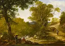 Johns and Turner's styles were similar and Johns made a painting box by hand for his sketching partner. There are examples in John's sketchbooks of studies he made based on Turner's work.[2] This friendship was damaged when a painting by Johns, that was owned by the influential art critic Samuel Carter Hall, was engraved and published and erroneously attributed to Turner. The publishers did print a correction and apology in the newspapers but this still did not prevent the same painting being sold at Christie's still with an incorrect attribution to Turner. Johns exhibited at prestigious exhibitions in London including the Royal Academy. Despite this exposure his work was later confused with Turner's on two other occasions.[1] Turner is said to have "tired of Johns' copying" although they were still acquaintances in 1840.[2]