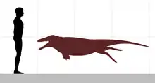 Ambulocetus (Latin ambulare "to walk" + cetus "whale") is a genus of early amphibious cetacean[lower-alpha 1] from the Kuldana Formation in Pakistan, roughly 48 or 47 million years ago during the Early Eocene (Lutetian). It contains one species, Ambulocetus natans (Latin natans "swimming"), known solely from a single, near-complete fossil. Ambulocetus is among the best-studied of Eocene cetaceans, and serves as instrumental evidence for cetacean evolution and their transition from land to sea, as it was the first cetacean discovered to preserve a suite of adaptations consistent with an amphibious lifestyle. Ambulocetus is classified in the group Archaeoceti—the ancient forerunners of modern cetaceans whose members span the transition from land to sea—and in the family Ambulocetidae, which includes Himalayacetus and Gandakasia (also from the Eocene of the Indian subcontinent).
