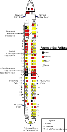 Captain Buschmann and 8 of the plane's 139 passengers were immediately killed in the crash, later, another two passengers die in the hospital in the weeks that followed.[1]: 47 [4] First Officer Origel, three of the four flight attendants, and 41 passengers sustained serious injuries, the remaining flight attendant and 64 passengers sustained minor injuries, and 24 passengers sustained no injuries.[1]: 47