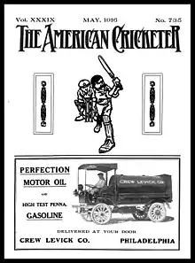 The American Cricketer was the publication of record for club cricket in the United States for more than half a century. The slim magazine was first published in Philadelphia in 1877 and continued to see print through 1929, a total of 52 years.[1] It was published weekly over the summer cricketing season, and monthly over winter. George Newhall of the Newhall cricketing family of Philadelphia was one of its editors.