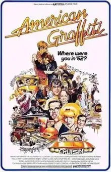During the production of THX 1138 (1971), producer Francis Ford Coppola challenged co-writer/director George Lucas to write a script that would appeal to mainstream audiences.[4] Lucas embraced the idea, using his early 1960s teenage experiences cruising in Modesto, California. "Cruising was gone, and I felt compelled to document the whole experience and what my generation used as a way of meeting girls," Lucas explained.[4] As he developed the story in his mind, Lucas included his fascination with Wolfman Jack. Lucas had considered doing a documentary about the Wolfman when he attended the USC School of Cinematic Arts, but he ultimately dropped the idea.[5]