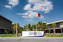 The university's 75,000-square-metre (19-acre) campus is located in Bahrain's Southern Governorate, in Riffa. It was designed by US-based architects Ayers Saint Gross to accommodate up to 4,000 students and includes a library, four academic buildings each three storeys high, and an auditorium seating 250. The built-up area of campus totals 22,865 square metres (5.650 acres); there are 878 parking spaces.[6][7][8]