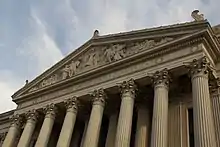 The National Archives Building in Washington preserves and displays the Declaration of Independence, the Constitution and the Bill of Rights. Pauline Maier describes these texts as enshrined in massive, bronze-framed display cases.[46] While political scientists, sociologists, and legal scholars study the Constitution and how it is used in American society, on the other hand, historians are concerned with putting themselves back into a time and place, in context. It would be anachronistic for them to look at the documents of the "Charters of Freedom" and see America's modern "civic religion" because of "how much Americans have transformed very secular and temporal documents into sacred scriptures".[46] The whole business of erecting a shrine for the worship of the Declaration of Independence strikes some academic critics looking from the point of view of 1776 or 1789 America as "idolatrous, and also curiously at odds with the values of the Revolution". It was suspicious of religious iconographic practices. At the beginning, in 1776, it was not meant to be that at all.[47]