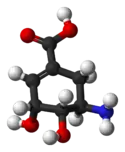 Aminoshikimic acid is an intriguing alternative to shikimic acid as a starting material for the synthesis of neuraminidase inhibitors such as the antiinfluenza agent oseltamivir.[3] Aminoshikimic acid is also a versatile chiral starting material for the synthesis of new pharmaceuticals. As with shikimic acid, aminoshikimic acid is an attractive candidate for use as the core scaffold for synthesis of combinatorial libraries.