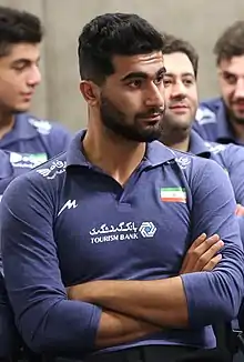 Amir Hossein Esfandiar (Persian: امیرحسین اسفندیار, born January 24, 1999, in Amol) is an Iranian volleyball player who plays as an outside spiker for the Iranian national team and Belgian club Greenyard Maaseik.