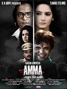Amma is a unreleased multilingual Indian film written and directed by Faisal Saif, and produced by C. R. Manohar under the banner of Tanvi Films. Filmed in Hindi, Kannada, Telugu, Tamil, English and Malayalam, the film is Sandalwood star Ragini Dwivedi's second film to be launched on her birthday after Ragini IPS.