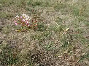It is distinguished from other species of Ammocharis by the presence of zygomorphic flowers, as opposed to actinomorphic, and by its seed dispersal mechanism, with a wind blown indehiscent infructescence (fruiting head) that gave it its name.[1] The fruiting head dries rapidly and is shed as a single unit, which the rolls away (tumbles), born by the wind.[2] Another distinguishing feature in the infructescence is the pedicels, which elongate, spread apart, stiffen and ultimately radiate equally in all directions.[3][4][5]