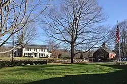The Amos Fuller House stands in what is now a residential area of central Needham, on the northeast side of Nehoiden Street nearly opposite its junction with Newell Avenue. It is set well back from the road on a parcel over 3 acres (1.2 ha) in size, with a 19th-century barn to one side. The house is a 2+1⁄2-story wood-frame structure, with a side-gable roof. An ell extends to the rear, and an enclosed porch extends to the side. The rear right side of the house includes a "Beverly jog", or projecting section that extends part of the rear roof line. The house originally had a central chimney, which was removed in the late 19th century.[2]