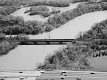 In 1942, a Pennsylvania Railroad bridge watchman was struck by a train and thrown from the bridge.[18] The bridge suffered a fire early in the morning on January 24, 1944.[19] At first, the Federal Bureau of Investigation feared that the bridge had been set on fire deliberately as an act of sabotage.[19] But the Metropolitan Police Department said that the fire started when a night watchman dumped hot coals from the stove in his watchhouse down the embankment of the river, igniting dry brush and oil (which had dripped from passing rail cars) at the base of the bridge.[19] A fireboat and 20 fire trucks and engines were needed to put out the blaze, which sent flames 50 feet (15.24 m) into the air.[19] Some of the bridge's spans buckled because of the fire's heat.[19]
