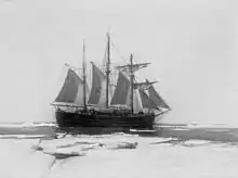 After leaving the Bay of Whales on 15 February 1911, Fram sailed for Buenos Aires where she arrived on 17 April.[155] Here, Nilsen learned that the expedition's funds were exhausted; a sum supposedly set aside for the ship's needs had not materialised. Fortunately, Amundsen's friend Don Pedro Christopherson was at hand to fulfil his earlier promises to provide supplies and fuel.[156] Fram departed in June for an oceanographic cruise between South America and Africa, which occupied the next three months.[157] The ship returned to Buenos Aires in September for final refitting and re-provisioning, before sailing south on 5 October. Strong winds and stormy seas prolonged the voyage, but the ship arrived at the Bay of Whales on 9 January 1912.[158] On 17 January the men in Framheim were surprised by the appearance of a second ship; it was the Kainan Maru, carrying the Japanese Antarctic Expedition led by Nobu Shirase.[159] Communication between the two expeditions was limited by language difficulties, though the Norwegians gathered that the Japanese were heading for King Edward VII Land.[160] Kainan Maru departed the next day, and on 26 January she landed a party on King Edward VII Land. This was the first landing on this shore from the sea; attempts by Discovery (1902), Nimrod (1908) and Terra Nova (1911) had all failed.[161]