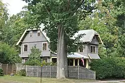 The Amy B. Mitchell House is a historic house at 237 Highland Avenue in Winchester, Massachusetts. The 2+1⁄2-story wood-frame house was built c. 1909 in an area made fashionable after the establishment of the Middlesex Fells Reservation, and is an excellent local example of Medieval Revival styling. It features jerkin-headed cross gable sections decorated with vertical valances, exposed rafter ends, and a rustic fieldstone chimney.[2]