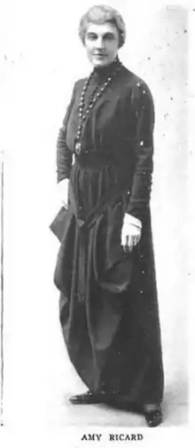 Amy Ricard made her political views in favor of women's suffrage public, wearing a "Votes for Women" pin and speaking at suffrage events in New York City.[14]