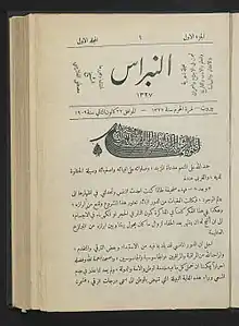 The Arabic-language magazine An-Nibrās (النبراس;The Lantern) appeared once a month in 1909 und 1910 in Beirut. The founder and publisher was Mustafa al-Ghalayini, a well-known Lebanese theologian, writer and reformer. In addition to scientific articles and findings, An-Nibrās focused on cultural topics.[1] The reader informed about literary and historical facts. Especially the criticism of politics and society played a major role for al-Ghalayini. Religious topics were not of primary importance but were covered as well.[2] Subscriptions were offered outside of Lebanon not only to Egypt but also to United States and India.[3]